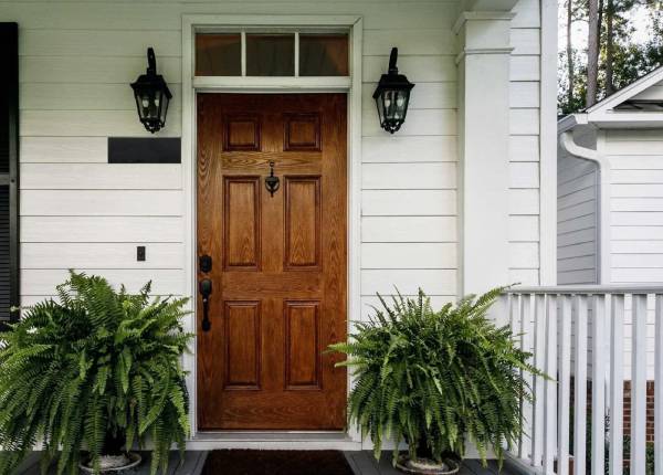 Деревянная дверь в дачном доме Достойное качество Профили и фурнитура от брендов с мировым именем, в том числе оригинальные немецкие окна, точный замер, профессиональный монтаж – гарантия лучшего результата.